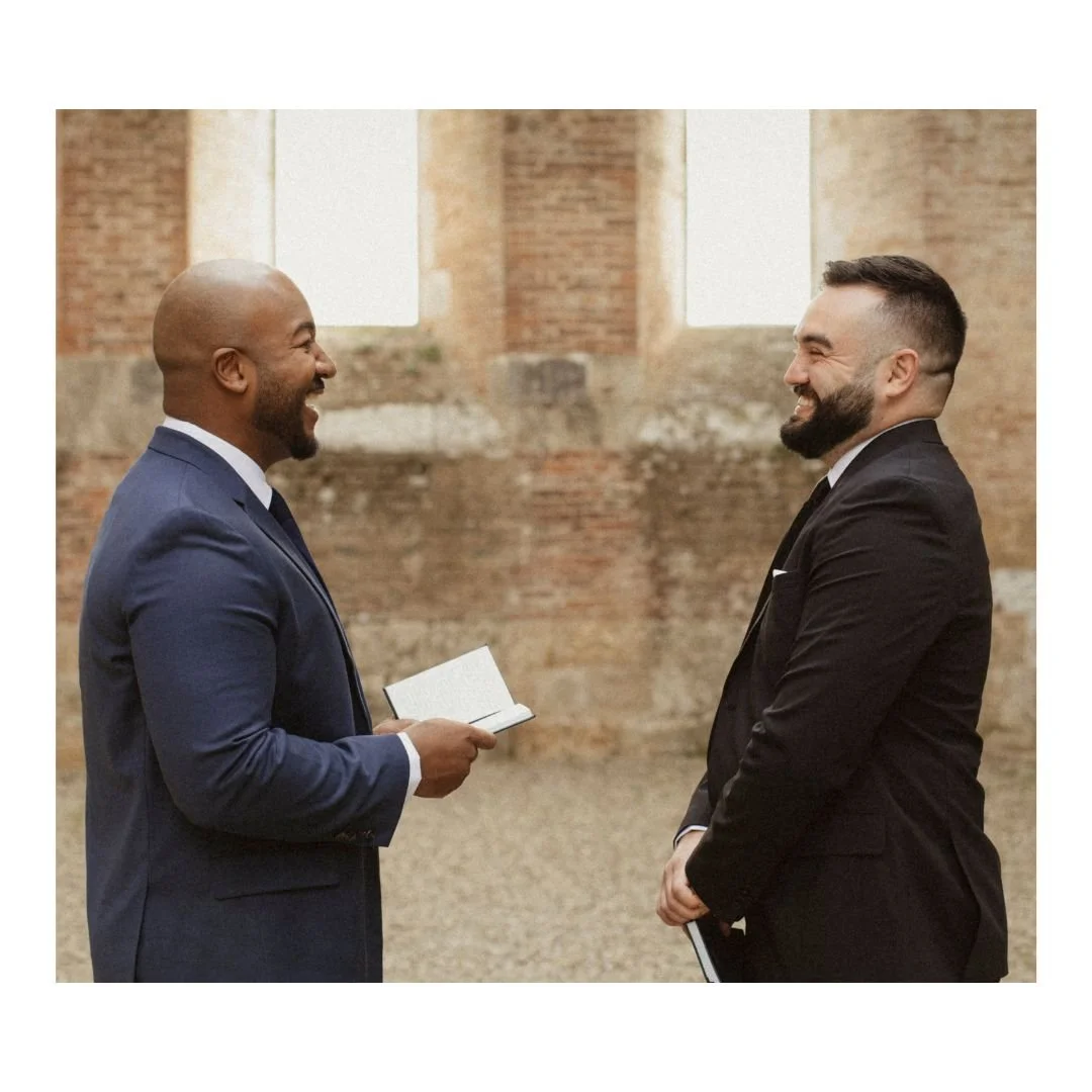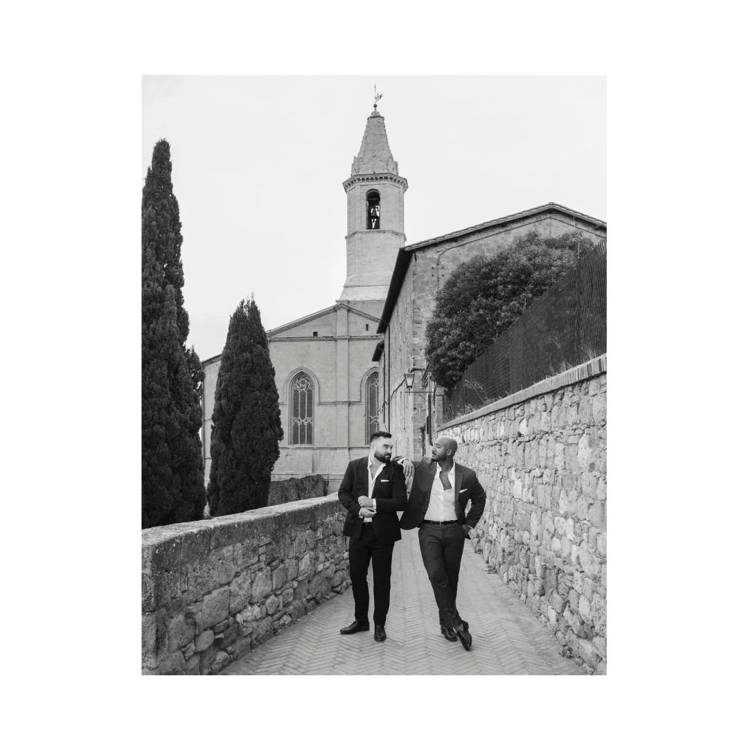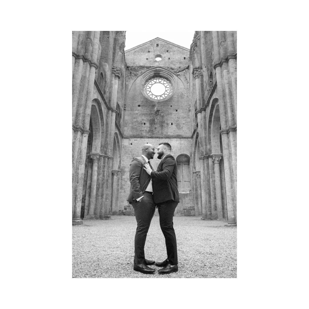 We were married in Tuscany in an extremely intimate ceremony — just the two of us and a photographer. In the ruins of San Galgano Abbey, the remains of Catholic church set among the rolling hills of the Chianti countryside. Once a place of worship, the open-air ruins felt like a poetic nod to both of our religious upbringings — sacred, quiet, and rooted in history, yet open to the sky. The ceremony was simple and deeply personal, unfolding in a setting that felt timeless and grounding. It was a moment that felt entirely our own.